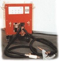 8 - 25 kVA, with hand-operated or air-operated guns 8C- and X versions), air- or water-cooled, single sided gun (for nails, screws, heating and bot single sided and twin spot), percussion extractor (for car body repair shops, proto type constructions and small production).
